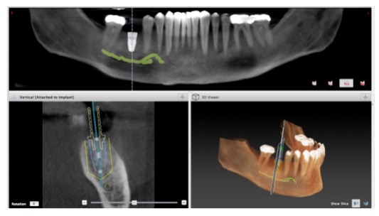 Pour prévoir la chirurgie de pose d’implants, il est très souvent nécessaire de réaliser un examen d’imagerie. Il s’agit d’un cone beam qui permet d’avoir une image en trois dimensions des mâchoires et de prévoir l’intervention grâce à un logiciel informatique. Cet examen n’est pas remboursé par la sécurité sociale et est à la charge des patients.