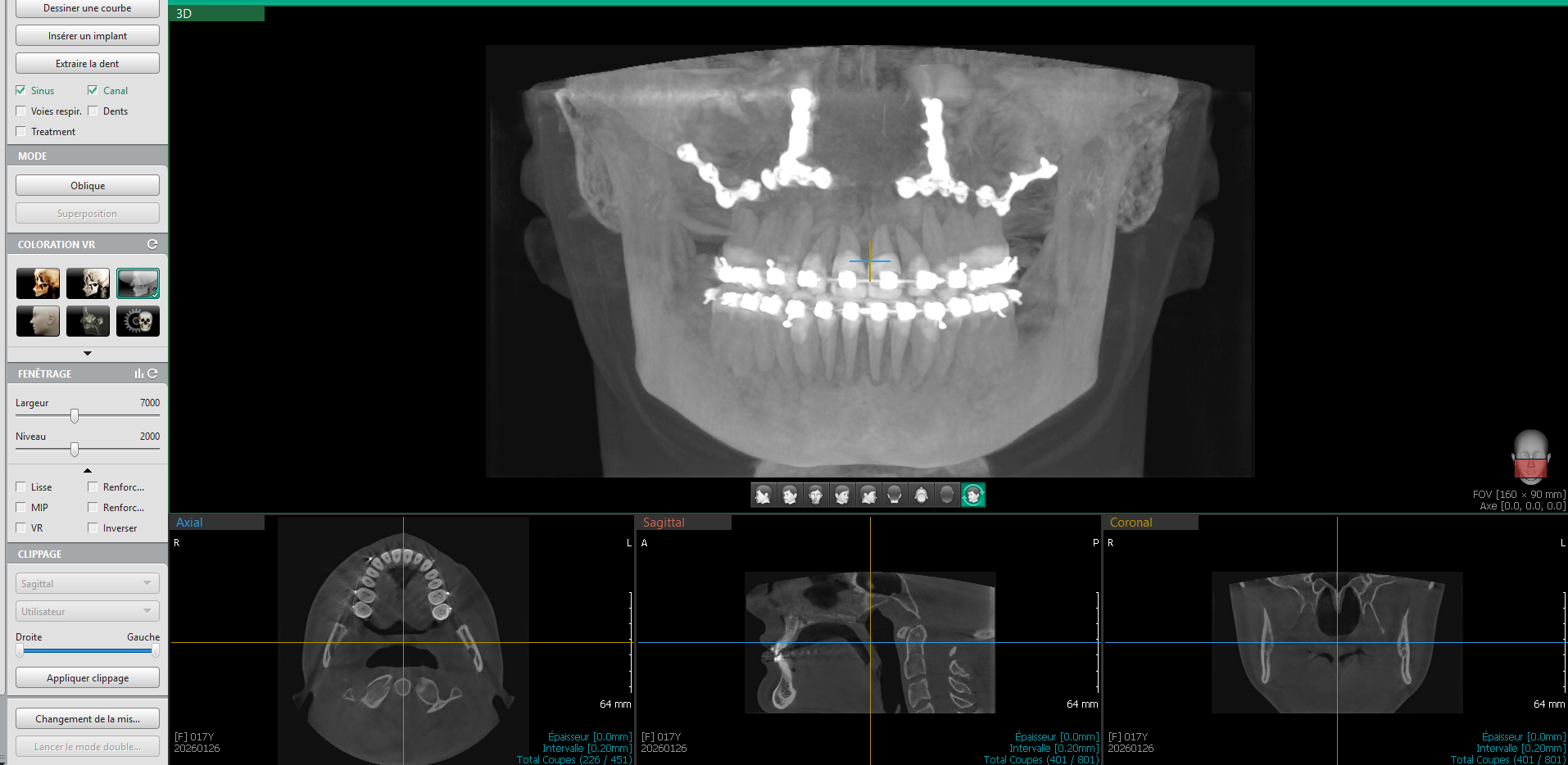 Le Cabinet est équipé d’un Cone Beam CT grand champ, double scann. Il s’agit d’une innovation majeure des dernières années dans la radiologie numérique en 3D.